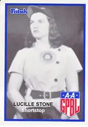 Lucille Richards (née Stone; December 26, 1925 – May 20, 2016) was an All-American Girls Professional Baseball League shortstop who played for the Racine Belles and South Bend Blue Sox during the 1946 AAGPBL season. Listed at 5' 4", 130 lb., Stone batted and threw right handed. She was dubbed ´Lou´ by her friends and teammates.[1][2]