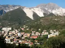 The Apuan Alps above Carrara show evidence of at least 650 quarry sites, with about half of them currently abandoned or worked out.[11] The Carrara quarries have produced more marble than any other place on earth.[12]