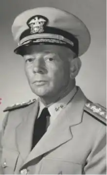 Quiggle returned to sea in February 1953 when he became commanding officer of USS Mount Olympus (AGC-8), the flagship of Commander, Amphibious Ready Group Two, United States Atlantic Fleet.[1] In October 1953 he began a tour with the North Atlantic Treaty Organization (NATO) as executive officer of the Plans and Operations Division on the staff of the Commander-in-Chief, Allied Forces Southern Europe.[1] He left that position in December 1955,[1] and in February 1956 he took command of Transport Amphibious Squadron Eight, with the attack transport USS Cambria (APA-36) as his flagship.[1] President Dwight Eisenhower approved his promotion to rear admiral on 17 July 1956.[1] In August 1956 he assumed duty as Resident Member, United Nations Command, Military Armistice Commission.[1] He was assigned to the Joint Staff, Commander-in-Chief, Far East, in March 1957[1] and in July 1957 he became Deputy Chief of Staff, Joint Staff, Commander, United States Forces Japan.[1] On 1 August 1957, his promotion to rear admiral went into effect.[1]