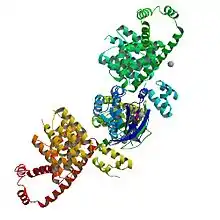 - ↑ Nezami AG, Poy F, Eck MJ (February 2006). "Structure of the autoinhibitory switch in formin mDia1". Structure. 14 (2): 257–63. doi:10.1016/j.str.2005.12.003. PMID 16472745.