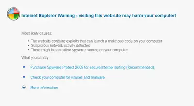 The malware can also block access to known spyware removal sites and in some instances, searching for "antivirus 2009" (or similar search terms) on a search engine will result in a blank page or an error page. Some variants will also redirect the user from the actual Google search page to a false Google search page with a link to the virus' page that states that the user has a virus and should get Antivirus 2009. In some rare cases, with the newest version of the malware, it can prevent the user from performing a system restore.