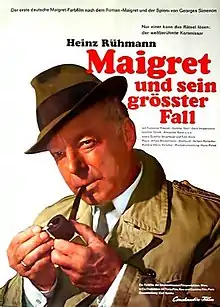 Maigret and His Greatest Case (German: Maigret und sein grösster Fall) is a 1966 crime film directed by Alfred Weidenmann and starring Heinz Rühmann, Françoise Prévost and Günther Stoll.[1] It was made as a co-production between Austria, France, Italy and West Germany. It is based on the 1931 novel Maigret at the Gai-Moulin featuring the fictional Sûreté detective Jules Maigret.