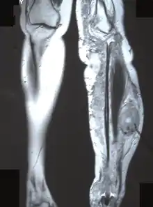 - 1 2 Panigrahi S, Mishra SS, Das S, Dhir MK (August 2013). "Primary malignant peripheral nerve sheath tumor at unusual location". Journal of Neurosciences in Rural Practice. 4 (Suppl 1): S83–S86. doi:10.4103/0976-3147.116480. PMC 3808069. PMID 24174807.
