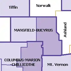 The Mansfield–Ashland–Bucyrus, OH Combined Statistical Area is a CSA in the U.S. state of Ohio, as defined by the United States Census Bureau. It consists of the Mansfield Metropolitan Statistical Area (Richland County); and the Bucyrus–Galion Micropolitan Statistical Area (Crawford County), and, since 2020, the Ashland Micropolitan Statistical Area (Ashland County).[1] As of the 2020 Census, the CSA had a population of 219,408.[2]