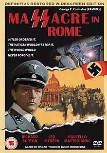 Massacre in Rome (Italian: Rappresaglia) is a 1973 Italian war drama film directed by George Pan Cosmatos[1] about the Ardeatine massacre which occurred at the Ardeatine caves in Rome, 24 March 1944, committed by the Germans as a reprisal for a partisan attack against the SS Police Regiment Bozen.[2] The film was based on the 1967 book Death in Rome by Robert Katz.[3] An Italian court gave producer Carlo Ponti and director Cosmatos a six-month suspended sentence for their film which claimed Pope Pius XII knew of and did nothing about the execution of Italian hostages by the Germans. The charges eventually were dropped on appeal.[4] The names of the victims are shown in the closing credits, as opposed to the cast credits and crew members.