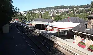 Matlock railway station is owned by Network Rail and managed by East Midlands Railway; it serves the Derbyshire Dales county town of Matlock, Derbyshire, England. The station is the terminus of both the Derwent Valley Line from Derby and Peak Rail who operate heritage services to Rowsley South. Both lines are formed from portions of the Midland Railway's former main line to Manchester Central. Through running is technically possible but is not done in normal service.