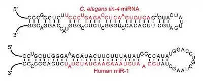 - ↑ Grimson A, Farh KK, Johnston WK, Garrett-Engele P, Lim LP, Bartel DP (July 2007). "MicroRNA targeting specificity in mammals: determinants beyond seed pairing". Molecular Cell. 27 (1): 91–105. doi:10.1016/j.molcel.2007.06.017. PMC 3800283. PMID 17612493.