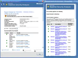 ![]() Screenshot of Microsoft Baseline Security Analyzer analysis result | |
