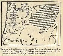 The scientific name of the gray-tailed vole is Microtus canicaudus. The generic name Microtus derives from the Ancient Greek words μικρός (small) and οὖς (ear).[2] The species name canicaudus derives from the Latin canens (gray) and cauda (tail).[2] The gray-tailed vole was first described in 1897 by Gerrit S. Miller in the Proceedings of the Biological Society of Washington.[3] The type specimen was collected in McCoy, Oregon, on December 1, 1895, by B.J. Bretherton.[3][4] Miller's initial examination included the type specimen and eleven others.[3] Two from his collection had been obtained in Beaverton.[3] The remaining specimens, collected in McCoy, were part of the US National Museum Biological Survey under C. Hart Merriam.[3]