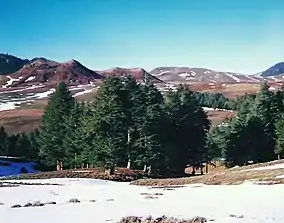 The Middle Atlas is a solid mountainous mass of 350 km in length in the north-east of Morocco with a unique charm. Its biodiversity, both in fauna and flora, make Middle Atlas a significant tourist destination. The region is noted for occurrence of the endangered primate, Barbary macaque, Macaca sylvanus; this monkey prehistorically had a much wider distribution throughout northern Morocco.[1] Wild boar and polecat are also found within the Middle Atlas Range.[2]
