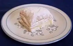 Miguelitos are a type of cream-filled puff pastry, which can also be referred to as a cake. They originated in La Roda, in Castilla–La Mancha, Spain: Manuel Blanco, the creator of these flaky desserts, was born in La Roda in 1925. After being a part of the military in 1960 he migrated to a place called Pamplona where his masterpiece was created. The name Miguelito came after he decided to give his friend Miguel the first bite of his creation; from there the name stuck.[1] La Roda de Albacete started to be known with various pastry chefs throughout Spain, causing the expansion of the dessert.