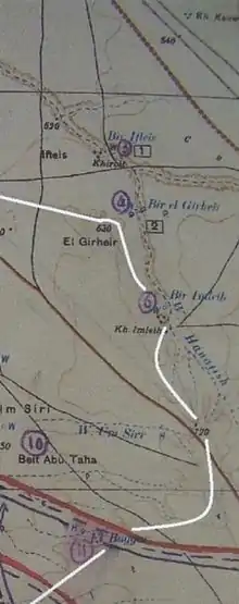 The campaign was coming to the end of a period of stalemate, with the EEF preparing to renew its offensive. The Turkish Yildirim Army Group carried out a reconnaissance in force in late October against 8th Mounted Brigade, which was holding a 14 miles (23 km) outpost line along the el Buqqar ridge to cover railway construction parties. At 04:10 on 27 October a post on Point 630 held by the Middlesex Yeomanry was attacked by an Ottoman cavalry patrol in great strength, bringing on the Battle of Buqqar Ridge. Two Yeomanry troops ordered forward in support advanced through heavy fire to find the post almost surrounded. A squadron of the City of London Yeomanry in reserve advanced, also under heavy fire, to occupy a position 200 yards (180 m) south of the threatened post, which stopped the Ottoman forces from completely surrounding the Middlesex men. By 10.55 an Ottoman infantry attack was developing against the post. The defenders were driven off the hill but withdrew to a trench just below the crest and held out there during the day against odds of 20 to 1, with the attackers closing to within 40 yards (37 m). Fighting continued until late in the afternoon when troops from the 53rd (Welsh) Division drove off the attackers. The Yeomanry post had lost 4 dead and 14 wounded.[44][45][46]