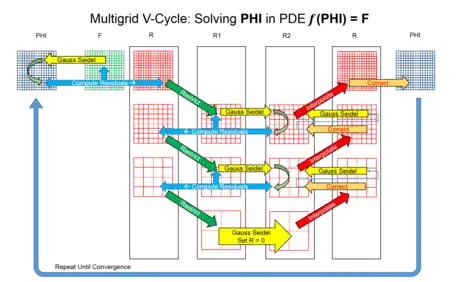 - ↑ F. Hülsemann; M. Kowarschik; M. Mohr; U. Rüde (2006). "Parallel geometric multigrid". In Are Magnus Bruaset; Aslak Tveito (eds.). Numerical solution of partial differential equations on parallel computers. Birkhäuser. p. 165. ISBN 978-3-540-29076-6.