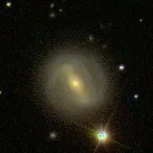 NGC 4907 is a barred spiral galaxy located about 270 million light-years away[2] in the constellation of Coma Berenices.[3] It is also classified as a LINER galaxy.[2] NGC 4907 was discovered by astronomer Heinrich d'Arrest on May 5, 1864.[4] The galaxy is a member of the Coma Cluster, located equidistant between NGC 4928 and NGC 4829.[5][6]