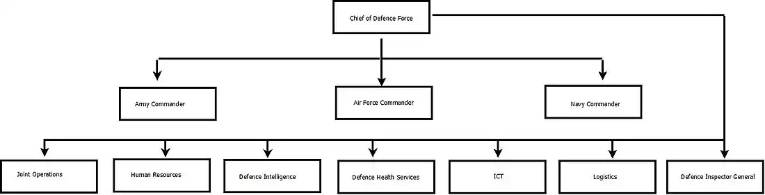 - Chief of Defence Force: Air Marshal Martin Pinehas[17]
