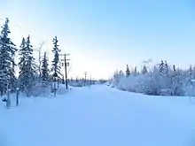 Summer temperatures are exceptionally high for such a northerly area, being far warmer than the tree line threshold. The highest temperature ever recorded in Alaska occurred in Fort Yukon on June 27, 1915, when it reached 100 °F (37.8 °C).[9][10] This was also the highest temperature recorded north of the Arctic Circle until June 20, 2020, when it was finally exceeded by a 38 °C (100.4 °F) reading at Verkhoyansk,[11][12] a location similarly known for its extremely continental climate.