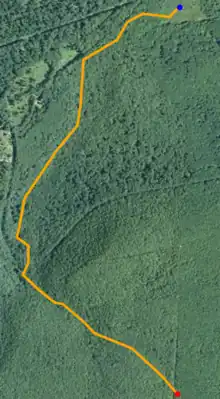 ![]() Satellite map of Negro Hollow. The red dot is the stream's source and blue dot is its mouth. | |