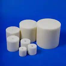 The seven standard HDPE nesting cylinders which make up the moderating assembly of the nested neutron spectrometer. (Note cylinders do not have their lids on.)