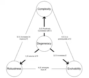 - Edelman, Gerald M.; Gally, Joseph A. (2001). "Degeneracy and Complexity in Biological Systems". Proceedings of the National Academy of Sciences, USA. 98 (24): 13763–13768. Bibcode:2001PNAS...9813763E. doi:10.1073/pnas.231499798. PMC 61115. PMID 11698650.