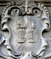 - ↑ As visible impaling Pyne (Gules, a chevron ermine between three pine apples or (Vivian, 1895, p.632)) on mural monument to Melior Hooper (née Pyne) (d.1703), (mother of Sir Nicholas II Hooper) in Upton Pyne Church ; Also visible on Queen Anne's Walk in Barnstaple and on a small enamelled plaque now on the staircase of the Barnstaple Guildhall, originally affixed to the wall of Queen Anne's Walk; These are the arms given in Burke's General Armory, 1884, p.505, for "Hooper"