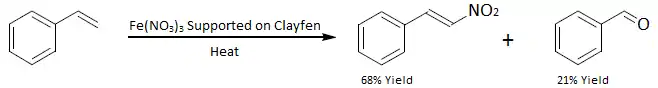 - ↑ Varma, Rajender; Naicker, Kannan; Liesen, Per (1998). "Selective nitration of styrenes with clayfen and clayan: A solvent-free synthesis of β-nitrostyrenes". Tetrahedron Letters. 39 (23): 3977–3980. doi:10.1016/S0040-4039(98)00740-0.