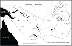 In the archaeological record there are well-defined traces of this expansion which allow the path it took to be followed and dated with some certainty. It is thought that by roughly 1400 BCE,[203] "Lapita Peoples", so-named after their pottery tradition, appeared in the Bismarck Archipelago of north-west Melanesia.[204][205]