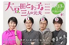 Omameda Towako and Her Three Ex-Husbands (大豆田とわ子と三人の元夫, Omameda Towako to Sannin no Motootto), or Towako Omameda and Her Three Ex-Husbands, also known by the abbreviation Mameo (まめ夫), is a Japanese television drama series. The official English title is My Dear Exes. It stars Takako Matsu as the titular character, a 40-year-old woman who, after three marriages that ended in divorce, is raising her teenage daughter while becoming the head of a construction company. Her attempts to succeed and live a fulfilled life only bring her closer to the antics of her ex-husbands (Ryuhei Matsuda, Akihiro Kakuta, Masaki Okada).[3][4]