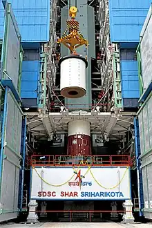 PSLV C48 RISAT-2BR1, core middle segment of first stage being integrated on launch platform at First Launch Pad.