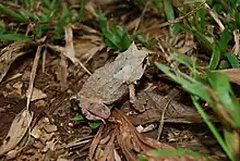 The Palawan horned frog (Pelobatrachus ligayae) is a species of frog in the family Megophryidae. It is endemic to the Balabac and Palawan islands, in the Philippines.[2] Its natural habitats are subtropical or tropical dry forests, subtropical or tropical moist lowland forests, subtropical or tropical moist montane forests, subtropical or tropical moist shrubland, rivers, and intermittent rivers. It is threatened by habitat loss.[1]
