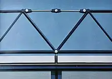 To support panels struck by automotive industry hydraulic presses, constituent parts of the Patera Building structure were pin-jointed for ease of handling and assembly. At the centres of the spans of the frames were unique 'tension-only' links — special fittings able to respond to varying structural loads.[13] Under normal conditions the structure acted as a three-pin arch. In other conditions, such as wind up-lift, it acted as a rigid frame. This innovation meant that very slender lightweight steel tubes could be used for the portal frame trusses. The 'Patera Building Stoke-on-Trent for Longton Industrial Holdings (Properties) Ltd' received a commendation in the British Constructional Steelwork Association's Structural Steel Design Awards 1983, sponsored by the British Steel Corporation and the British Constructional Steelwork Association Ltd. The Judges' Comments: 'The creative thought that lies behind this design breaks new ground in the excellence of its parts and their skilful integration in the making of a architectural whole. It is a delight to see such innovation and care being applied to the production of precisely fabricated, economical, small buildings.'[14]