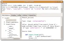 Phatch has a built in interactive Python console to explore the internals of the program.