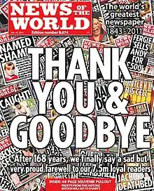 - ↑ Robinson, James (7 July 2011). "News of the World to close as Rupert Murdoch acts to limit fallout". The Guardian. Retrieved 28 August 2011.