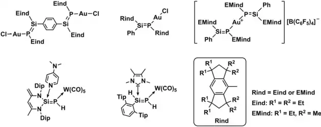 - ↑ Driess, M. (1994). "Some Aspects of the Chemistry of Silylidene-Phosphanes and -Arsanes". Coord. Chem. Rev. 145: 1–25. doi:10.1016/0010-8545(95)90212-0.