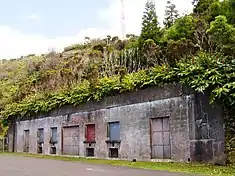 The second, or superior eruption, covers a great part of the eastern part of the island, resulting from sub-aerial and submarine eruptions.[3] The periods of sub-aerial activity resulted in extensive outcroppings, lava fields, layered pyroclasts, dykes and numerous seams (approximately 230), that originated in the central relief of Cavacas until Caldeira, and passing through Pico Alto, while submarine lava flows extended into the sea in the Bay of São Lourenço, Maia and Ponta do Castelo.[3]