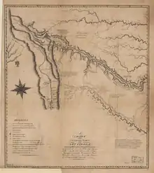 The expeditionary force turned south and struck out across the prairie for the Arkansas River. After reaching it on October 14, the party split in two. One group was led by Lieutenant James Biddle Wilkinson, son of the General.[5] They traveled downstream along the length of the Arkansas to its mouth and back up the Mississippi, safely returning to St. Louis.