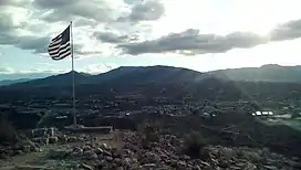 The area around the Pinal Mountains was inhabited by Pueblo-culture Native Americans around the 11th and 12th centuries.[6] This early culture has been called the Salado culture, and it thrived for centuries in the area. The Besh-Ba-Gowah ruins near the city of Globe are known to have been occupied by people of the Salado Culture from the 13th to 15th centuries. However, around the middle 15th century the Salado inhabitants abandoned the area and moved south, possibly merging with the Pima people in the process. Around this same time the Western Apache and Kwevkepaya-Yavapai people started to settle around the area. The Apache call the Pinal Mountains Dził Nnilchí' Diyiléé, meaning "pine-burdened mountain", while the Yavapai call the mountains Walkame, or "pine mountains".[6] Later on, in the 17th century, the Spanish began to explore the region and met with the native peoples; they translated the natives' term for the mountain into Pinal, or "stand of pine trees" in Spanish.[6] On at least one occasion the Pinal Mountains were a battle location between Spanish forces and the native Apache warriors; this brief conflict was called the Battle of the Pinal Mountains.