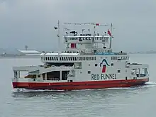 Red Funnel (The Southampton Isle of Wight and South of England Royal Mail Steam Packet Public Company Ltd)[21] provides two ferry services from the Town Quay area in Southampton to the Isle of Wight. The car ferry service to East Cowes, with a journey time of 50 minutes, is operated by the three 'Raptor' class vessels: Red Falcon, Red Eagle and Red Osprey. The Fast Passenger Ferry service runs to Cowes (which is called "West Cowes" by Red Funnel) in 22 minutes. It is provided by the Red Jet catamarans: 4, 6 and 7. A fourth ferry in Red Funnel's fleet, Red Kestrel is dedicated to freight traffic, entering service in May 2019.[22]