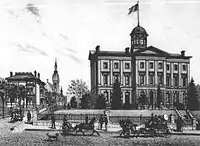 Portland developed a reputation early in its history as a hard-edged and gritty port town.[34] Some historians have described the city's early establishment as being a "scion of New England; an ends-of-the-earth home for the exiled spawn of the eastern established elite."[35] In 1889, The Oregonian called Portland "the most filthy city in the Northern States", due to the unsanitary sewers and gutters,[36] and, at the turn of the 20th century, it was considered one of the most dangerous port cities in the world.[37] The city housed a large number of saloons, bordellos, gambling dens, and boarding houses which were populated with miners after the California Gold Rush, as well as the multitude of sailors passing through the port.[34] By the early 20th century, the city had lost its reputation as a "sober frontier city" and garnered a reputation for being violent and dangerous.[34][38]