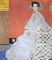 Klimt worked in Vienna during the Belle Époque, during which time the city made "an extreme and lasting contribution to the history of modern art".[5][6] During the 1890s he was influenced by European avant-garde art, including the works of the painters Fernand Khnopff, Jan Toorop and Aubrey Beardsley.[3] In 1897 he was a founding member and president of the Vienna Secession, a group of artists who wanted to break with what they saw as the prevailing conservatism of the Viennese Künstlerhaus.[7] Klimt in particular challenged what he saw as the "hypocritical boundaries of respectability set by Viennese society";[8] according to the art historian Susanna Partsch, he was "the enfant terrible of the Viennese art scene, [and] was acknowledged to be the painter of beautiful women".[9] By 1900 he was the preferred portrait painter of the wives of the largely Jewish Viennese bourgeoisie,[3][10] an emerging class of self-made industrialists who were "buying the innovative new art that state museums rejected", according to the journalist Anne-Marie O'Connor.[11]