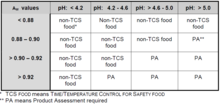 • Except as specified in Subparagraph (3)(d) of this definition, a FOOD that because of the interaction of its AW and pH values is designated as Product Assessment Required (PA) in Table A or B of this definition: