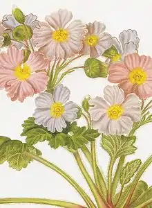 Primula sinensis, a hand-coloured engraving from John Lindley's Collectanea botanica (1821) of a plant both named and drawn by Lindley | |