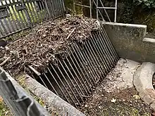 In September 1968, during the Great flood of 1968, the Prittle Brook overflowed and flooded houses in Daws Heath Road, Hadleigh and around Manchester Drive, Leigh-on-Sea.[10] The brook was subsequently culverted and provided with concrete embankments west of Daws Heath Road. In 1972–3 the Prittle Brook Flood Relief scheme was constructed. This takes excess water from the brook at times of flood from an inlet structure west of Eastwood Road (51°33'04"N 0°38'45"E. Elevation 33.5 metres AOD),[11] Leigh-on-Sea and transfers water through an underground tunnel.[10] Another intake to the tunnel is adjacent to Manchester Drive (51°33’03.5”N 0°39’41.6”E).The tunnel is 2.5 metres in diameter and is formed from segmented concrete blocks, it was constructed by Murphy using a rotary drum excavator.[12][13] The tunnel discharges water into the River Thames at an outfall on the foreshore at Chalkwell beach.[10][14]