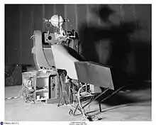 The Projection Planetarium was a training device housed in the Flight Research Laboratory hangar at NASA's Langley Research Center in Hampton, Virginia. It consisted of a custom designed star projector surrounded by a 40 feet (12 m) diameter sphere constructed from a surplus 53 feet (16 m) radome.[1] The star projector was movable in 3 directions while the capsule mockup and its pilots remained static. The system was used in studies of manual control of spacecraft using "out the window" visual information both in orbit and in a launch abort scenario. The planetarium was constructed in 1965 at a cost of $153,103 for research and development and $177,000 for construction and materials. An additional $145,400 worth of surplus materials were made use of in the project.[2][3]