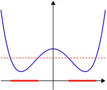 In mathematics, a quasiconvex function is a real-valued function defined on an interval or on a convex subset of a real vector space such that the inverse image of any set of the form is a convex set. For a function of a single variable, along any stretch of the curve the highest point is one of the endpoints. The negative of a quasiconvex function is said to be quasiconcave.