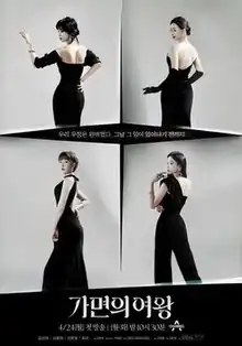 Queen of Masks[8] (Korean: 가면의 여왕) is a 2023 South Korean television series starring Kim Sun-a, Oh Yoon-ah, Shin Eun-jung, and Yoo Sun. It aired on Channel A from April 24 to June 13, 2023, every Monday and Tuesday at 22:30 (KST) for 16 episodes.[9][10][11] It is also available for streaming on Viu in selected regions.[12]