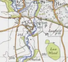 "QUENINGTON, a village and a parish in Cirencester district, Gloucester. The village stands on the Fosseway and the river Coln, 2 miles N. of Fairford, and 8 E. by N. of Cirencester"[6]