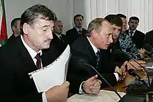 On 15 February 2007, Putin signed a decree removing Alkhanov and installing Kadyrov as Chechen's acting president.[52] On 2 March 2007, following Putin's nomination of Kadyrov as Chechen president, the Chechen parliament approved the nomination.[53] In the following days, serious changes took place in the administrative setup of the republic, affecting both the top- and middle-ranking officials. Former deputy prime minister Odes Baysultanov (a cousin of Kadyrov) was elevated to the vacant post of prime minister. Critics allege that Kadyrov is actively building his own "vertical of power" in the republic, and encouraging nepotism by placing men of his own family (Kadyrov) in all the leading and important positions.