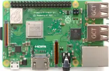 Raspberry Pi (/p/) is a series of small single-board computers (SBCs) developed in the United Kingdom by the Raspberry Pi Foundation in association with Broadcom. Since 2013, Raspberry Pi devices have been developed and supported by a subsidiary of the Raspberry Pi Foundation, now named Raspberry Pi Ltd.[3] The Raspberry Pi project originally leaned toward the promotion of teaching basic computer science in schools.[4][5][6] The original model became more popular than anticipated,[7] selling outside its target market for diverse uses such as robotics, home and industrial automation, and by computer and electronic hobbyists, because of its low cost, modularity, open design, and its adoption of the HDMI and USB standards.