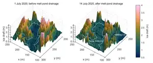 26. Salganik, Evgenii; Katlein, Christian; Lange, Benjamin A.; Matero, Ilkka; Lei, Ruibo; Fong, Allison A.; Fons, Steven W.; Divine, Dmitry; Oggier, Marc; Castellani, Giulia; Bozzato, Deborah; Chamberlain, Emelia J.; Hoppe, Clara J. M.; Müller, Oliver; Gardner, Jessie; Rinke, Annette; Pereira, Patric Simões; Ulfsbo, Adam; Marsay, Chris; Webster, Melinda A.; Maus, Sönke; Høyland, Knut V.; Granskog, Mats A. (2023). "Temporal evolution of under-ice meltwater layers and false bottoms and their impact on summer Arctic sea ice mass balance". Elementa: Science of the Anthropocene. University of California Press. 11 (1): 00035. Bibcode:2023EleSA..11...35S. doi:10.1525/elementa.2022.00035. hdl:10037/30456. ISSN 2325-1026. S2CID 257937347.