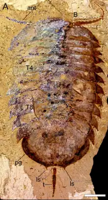 - ↑ Schmidt, Michel; Hou, Xianguang; Zhai, Dayou; Mai, Huijuan; Belojević, Jelena; Chen, Xiaohan; Melzer, Roland R.; Ortega-Hernández, Javier; Liu, Yu (2022-03-28). "Before trilobite legs: Pygmaclypeatus daziensis reconsidered and the ancestral appendicular organization of Cambrian artiopods". Philosophical Transactions of the Royal Society B: Biological Sciences. 377 (1847): 20210030. doi:10.1098/rstb.2021.0030. PMC 8819370. PMID 35125003.